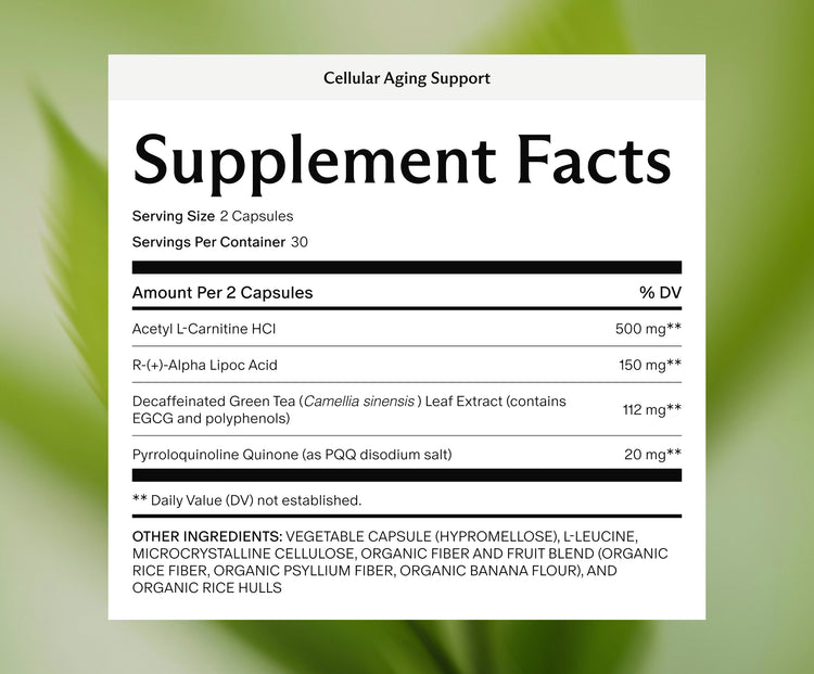 R-Alpha-Lipoic Acid, Acetyl-L-Carnitine, Green Tea Extract, and Pyrroloquinoline Quinone