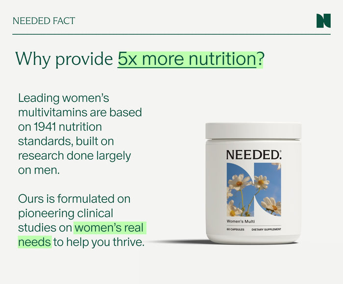 As a dietician, I strive to help my clients achieve optimal nutrition through food. Even with the most thoughtfully planned diet, it's nearly impossible to meet daily requirements through food alone. I recommend that women complement their diet with a wide range of bioavailable forms of nutrients like those found in Needed's Women's Health Multi. The quality of Needed's supplements is unmatched.
