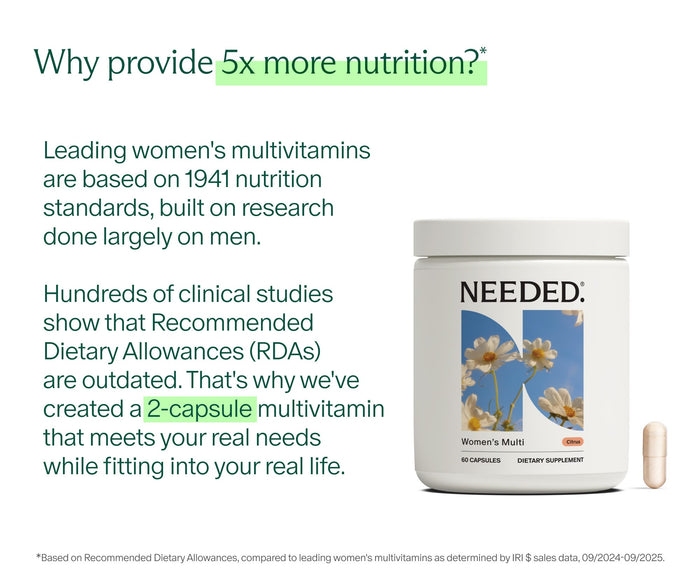 Women's Multi: Take two (2) capsules daily with food, ideally in the morning or around lunchtime for optimal energy throughout the day.