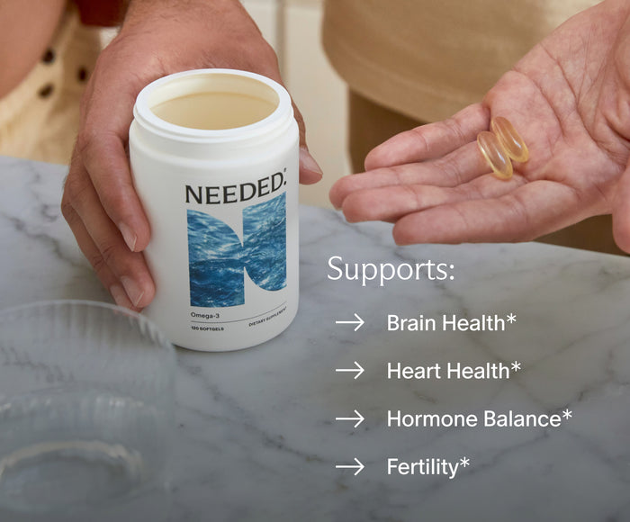 Our Omega-3 supports women's optimal brain, heart, and hormone health*.