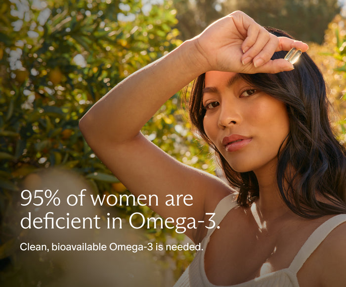 95% of women are deficient in Omega-3, which supports optimal brain and heart health, fertility, hormone balance, and more for women of all life stages.
